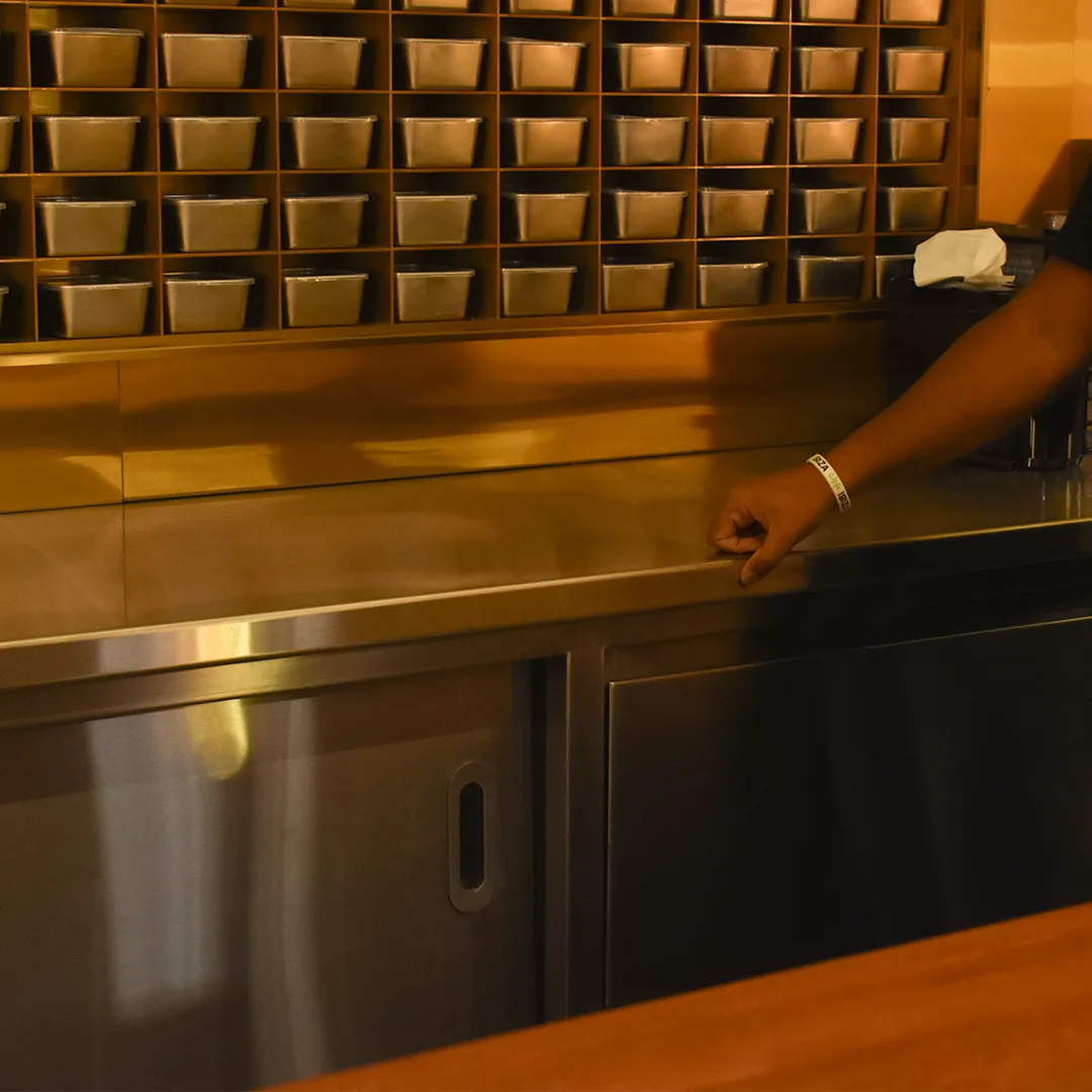 Setting the standard for luxury B2B projects, our undercounter fabrication is executed with absolute precision, achieving a truly seamless finish. By eliminating all visible welds or cuts, we deliver the ultimate in hygienic design and a visually flawless aesthetic. This painstaking technique ensures maximum durability and easy cleaning a non-negotiable requirement for high-end commercial spaces like the Timeless Club. When you need fabrication where perfection is mandatory,
